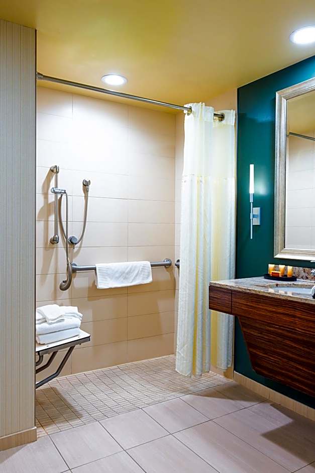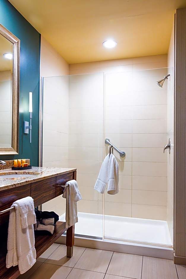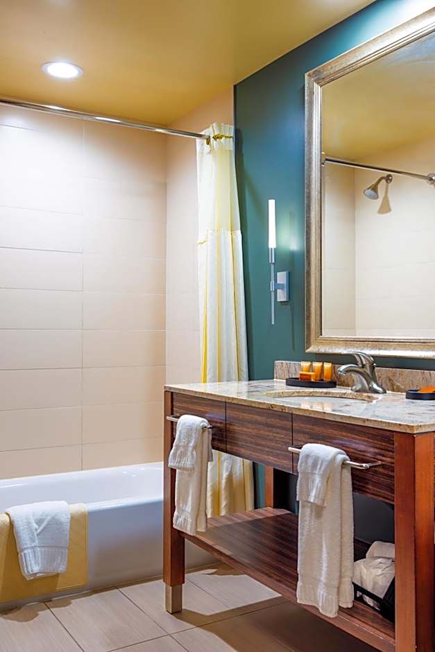 This room features 42-inch flat-screen TV, a coffee maker, an in-room safe, wired and wireless internet, room service and a refrigerator. A private bathroom with a shower/tub combo is provided as well. Daily housekeeping and climate-controlled heating and air conditioning are also offered, as well as a copy of USA Today.